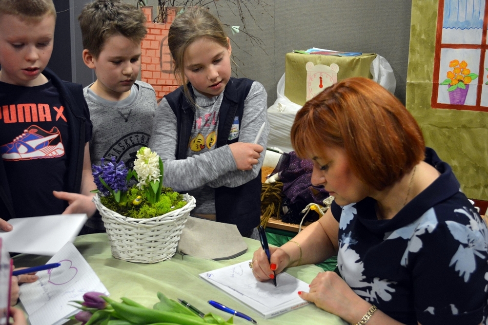 Pisarka opowiadała m.in. o życiu i baśniach Hansa Christiana Andersena i przeprowadziła konkurs wymowy ”łamańców językowych”.