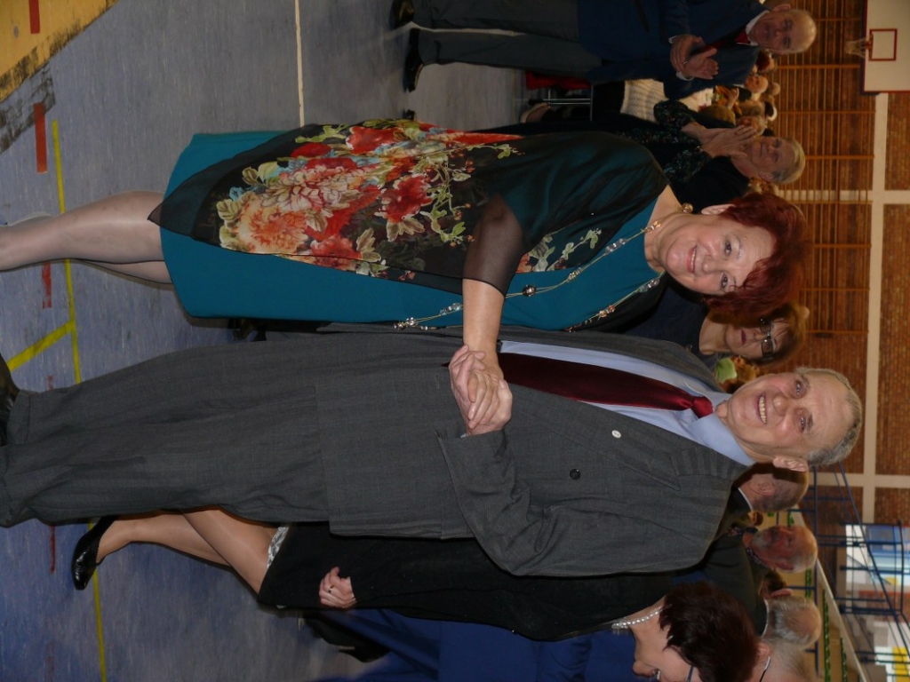 Po przemówieniu księdza Lasa zebrani wznieśli toast i przy akompaniamencie zespołu odśpiewano „Sto lat”. Nie zabrakło także tortu. Pierwszy kawałek ukroił i podał gościom gospodarz gminy,  burmistrz Kankowski.
