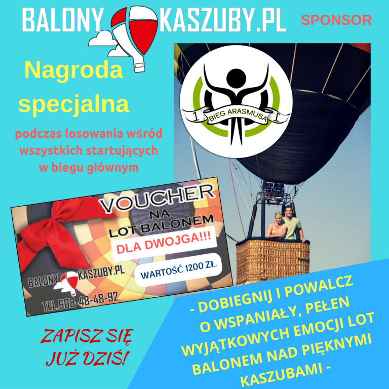 Bez wątpienia jedne z większych emocji wzbudzi losowanie, podczas którego będzie można wygrać zegarek garmina i …. lot balonem dla dwóch osób! Firma kaszuby-balony.pl ufundowała ekscytujący godzinny lot balonem dla dwójka na pięknymi i malowniczymi Kaszubami.