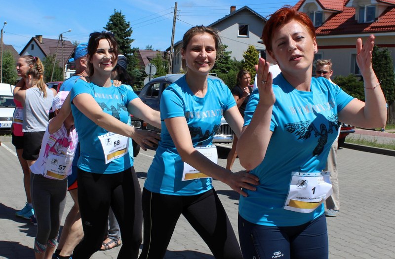 Zapisy na bieg rozpoczęły się na kilka minut przed 12:00 i trwały aż do rozpoczęcia biegu, który poprzedziła dwuetapowa rozgrzewka. Najpierw na scenę weszła trenerka tańca, a po niej rehabilitantka i trenerka fitness z Gdańska-Osowej, Sylwia Łukaszewicz.