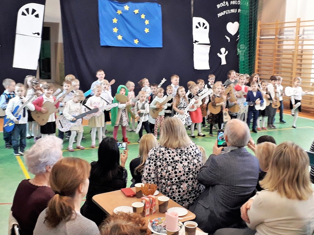 Mimo, że te święta w Polsce przypadają w styczniu, to atmosfera była bardzo gorąca. Dzieci z oddziałów przedszkolnych zaopatrzone w gitary wykonały utwór „Babcia od samego rana”, zaprezentowały taniec „Bumerang” i przedstawiły inscenizację o „Zielonym kapturku” zakończoną happy end’em. Uczniowie klas I – III zaśpiewali piękny, melodyjny utwór „Babuniu i Dziaduniu”. W wierszach dzieci wyrażały swą radość, że przez życie kroczą z babciami i dziadkami.