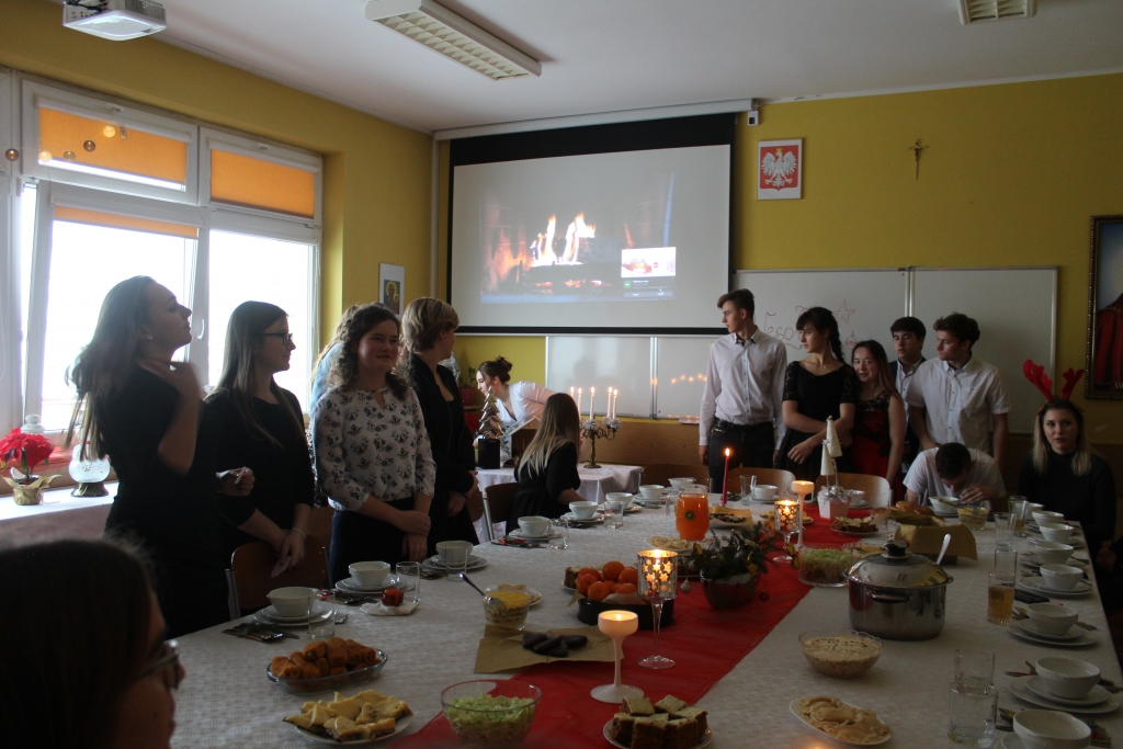 Nim uczniowie spotkali się w swoich klasach, aby zasiąść do wspólnego stołu, zebrali się na hali sportowej, gdzie czekał ich Bożonarodzeniowy spektakl. Nie brakowało występów muzycznych oraz tańców. Całość opierała się na rozmowie dziadka z wnuczkami, o wolności i miłości, które nie mogą bez siebie istnieć. Poruszono tematy niezwykle ważne dla każdego z nas. O stracie bliskich osób, którą w okresie świąt odczuwamy jeszcze mocniej. O wolności, która powinna opierać się na szacunku do drugiego człowieka i wolności, która nie oznacza życia bez zasad. O wolności, która pozwala na najpiękniejszą i szczerą miłość. O wolności praw człowieka i wolności narodu, którą dostrzegamy i cenimy, a nie jest dana raz na zawsze, czego przykładem jest trudna sytuacja na Ukrainie i trwający stan wojenny.