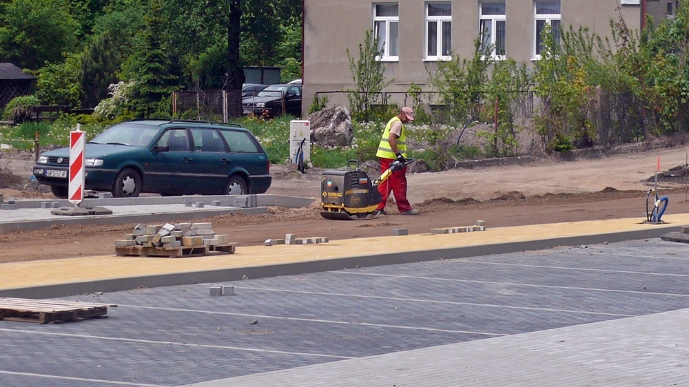 Pracę idą pełną parą, nie tylko przy budowie dworca. Trwa także budowa parkingu przy PKP. Położono już tam spore połacie kostki brukowej, i z pewnością parking przypadnie mieszkańcom do gustu. Przed renowacją samochody parkowały między kamieniami, a głębokimi dziurami, które mogły uszkodzić podwozie samochodu.