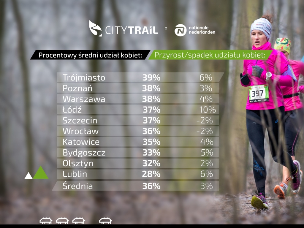 CITY TRAIL to największy cykl biegów przełajowych w Polsce. Są to biegi na 5 kilometrów, które odbywają się w największych miastach w Polsce, również w Trójmieście. W sezonie 2016/17 udało się pobić rekord frekwencji – wyniósł on 10 115 zawodników! Zobacz najciekawsze statystyki!