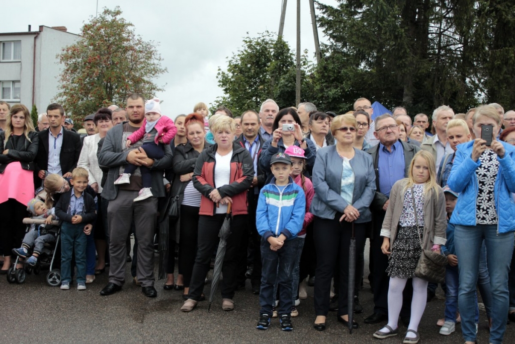 Przekazanie chleba, wypieczonego z tegorocznego ziarna, przez starostów dożynek Janinie Kwiecień staroście kartuskiemu i Andrzejowi Wyrzykowskiemu wójtowi gminy Przodkowo odbyło się na scenie. Nim to jednak nastąpiło włodarze witali gości. Trwało to dość długo. W końcu jednak powitali i bohaterów święta plonów. Przekazane bochny chleba trafiły w ręce starosty i wójta. Ci częstowali nim zgromadzonych na stadionie mieszkańców gminy.