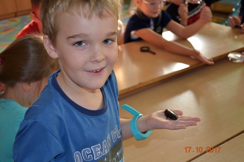 Dzieci miały okazję oglądać, dotykać i poznać ciekawostki na temat życia owadów, płazów i gadów. Karaczany, karaluchy madagaskarskie, karaluchy tureckie szare, straszyki diabelskie, wzbudziły poruszenie u dzieci i zaciekawienie. Oglądały je pod lupami powiększającymi. Gekony lamparcie i żółwie traktowane były przez uczniów prawie jak maskotki. Spotkanie z egzotycznymi gośćmi, wzbogacane ciekawymi opowieściami pani biolog, wywarło na dzieciach, mam nadzieję trwałe wrażenie.