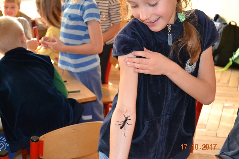 Dzieci miały okazję oglądać, dotykać i poznać ciekawostki na temat życia owadów, płazów i gadów. Karaczany, karaluchy madagaskarskie, karaluchy tureckie szare, straszyki diabelskie, wzbudziły poruszenie u dzieci i zaciekawienie. Oglądały je pod lupami powiększającymi. Gekony lamparcie i żółwie traktowane były przez uczniów prawie jak maskotki. Spotkanie z egzotycznymi gośćmi, wzbogacane ciekawymi opowieściami pani biolog, wywarło na dzieciach, mam nadzieję trwałe wrażenie.
