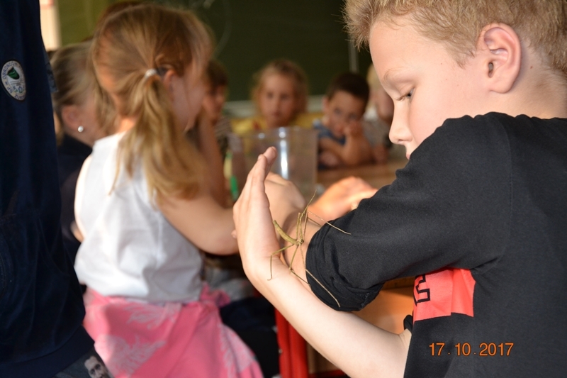 Dzieci miały okazję oglądać, dotykać i poznać ciekawostki na temat życia owadów, płazów i gadów. Karaczany, karaluchy madagaskarskie, karaluchy tureckie szare, straszyki diabelskie, wzbudziły poruszenie u dzieci i zaciekawienie. Oglądały je pod lupami powiększającymi. Gekony lamparcie i żółwie traktowane były przez uczniów prawie jak maskotki. Spotkanie z egzotycznymi gośćmi, wzbogacane ciekawymi opowieściami pani biolog, wywarło na dzieciach, mam nadzieję trwałe wrażenie.