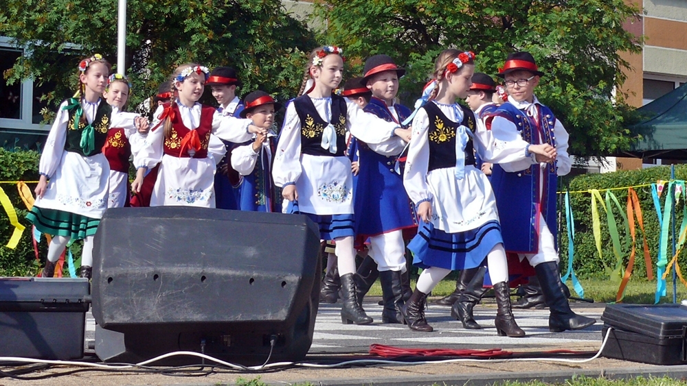Od godziny 17.00 na scenie przy szkole występowały dzieci. Grupy przedstawiały układy taneczne i śpiewały. Przegląd talentów rozpoczął Regionalny Zespół Dziecięcy Słunôszka.