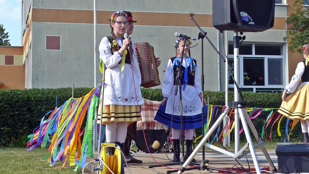 Od godziny 17.00 na scenie przy szkole występowały dzieci. Grupy przedstawiały układy taneczne i śpiewały. Przegląd talentów rozpoczął Regionalny Zespół Dziecięcy Słunôszka.