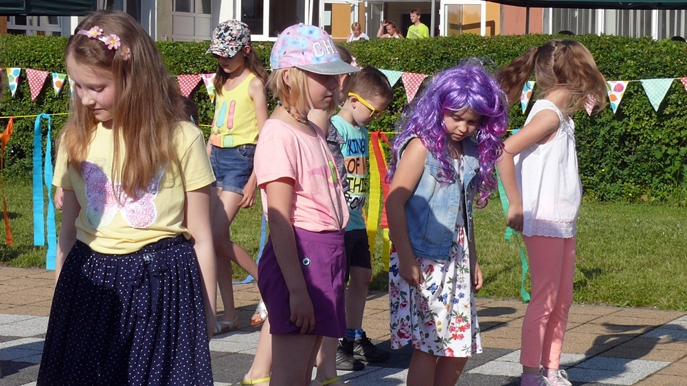 Od godziny 17.00 na scenie przy szkole występowały dzieci. Grupy przedstawiały układy taneczne i śpiewały. Przegląd talentów rozpoczął Regionalny Zespół Dziecięcy Słunôszka.
