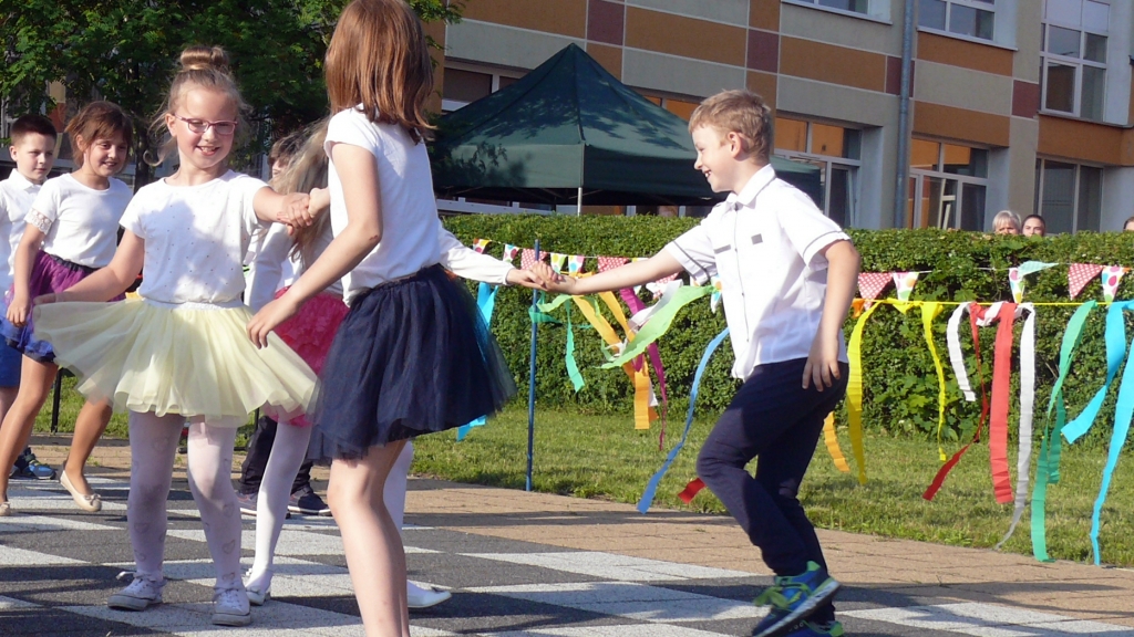 Od godziny 17.00 na scenie przy szkole występowały dzieci. Grupy przedstawiały układy taneczne i śpiewały. Przegląd talentów rozpoczął Regionalny Zespół Dziecięcy Słunôszka.