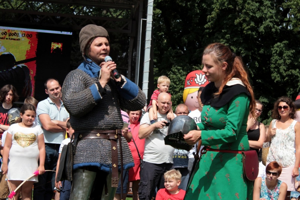 Pogoda dopisała, mieszkańcy i turyści nie zawiedli. Przybyli całymi rodzinami. Epoka rycerzy wciąż ciekawi. Przyciągają zbroje, stroje, pojedynki, zwyczaje… W parku stanęły namioty i stragany. Jest zbrojownia. Jest kat i są dyby. Odbywa się jarmark. W programie między innymi pokazy walk rycerskich, ubierania zbroi i pasowania na rycerza.