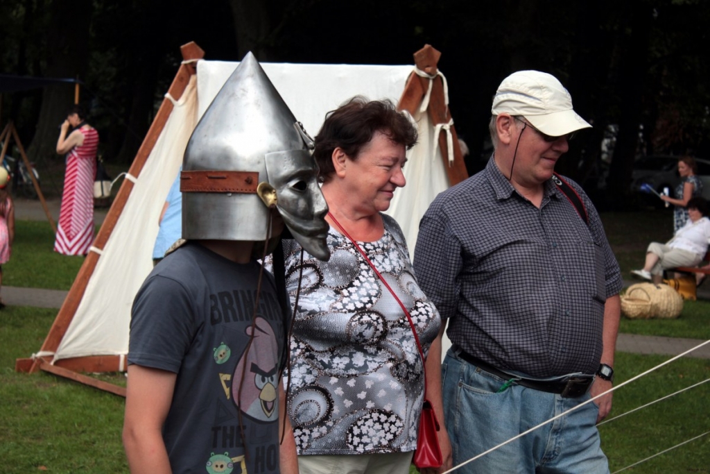 Pogoda dopisała, mieszkańcy i turyści nie zawiedli. Przybyli całymi rodzinami. Epoka rycerzy wciąż ciekawi. Przyciągają zbroje, stroje, pojedynki, zwyczaje… W parku stanęły namioty i stragany. Jest zbrojownia. Jest kat i są dyby. Odbywa się jarmark. W programie między innymi pokazy walk rycerskich, ubierania zbroi i pasowania na rycerza.