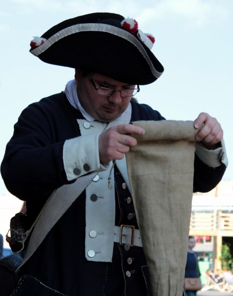 Zmianę warty i pokaz musztry zaprezentowali żołnierze garnizonu królewskiego miasta Gdańska, którzy pod Wieżę Więzienna przybyli w towarzystwie dam. Natomiast członkowie Gdańskiej Roty Mieszczańskiej pokazali średniowieczne stroje i uzbrojenie. Do zebranych pod wieżą przybył posłaniec z Warszawy. Przyniósł on z wiadomość o uchwaleniu KONSTYTUCJI. Gdańszczanie złożyli przysięgę na wierność królowi.