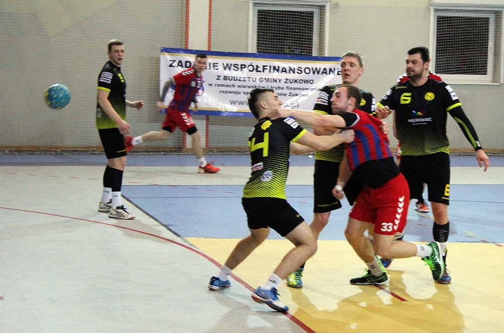 Mecz GKS Żukowo – MKS Wągrowiec zakończył się wynikiem 30-35. Niestety, żukowianie przegrali na własnym boisku. Od początku spotkania przewaga gości wynosiła 4-5 bramek. Zobacz zdjęcia!