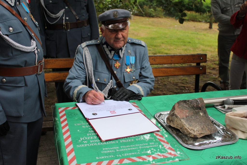 Dokładnie o godzinie dwunastej rozpoczęły się uroczystości związane z wmurowaniem kamienia węgielnego pod pomnik marszałka Józefa Piłsudskiego w parku im. 66 Kaszubskiego Pułku Piechoty, który nosił imię marszałka. Inicjatorem budowy jest Związek Piłsudczyków RP o. Kartuzy.