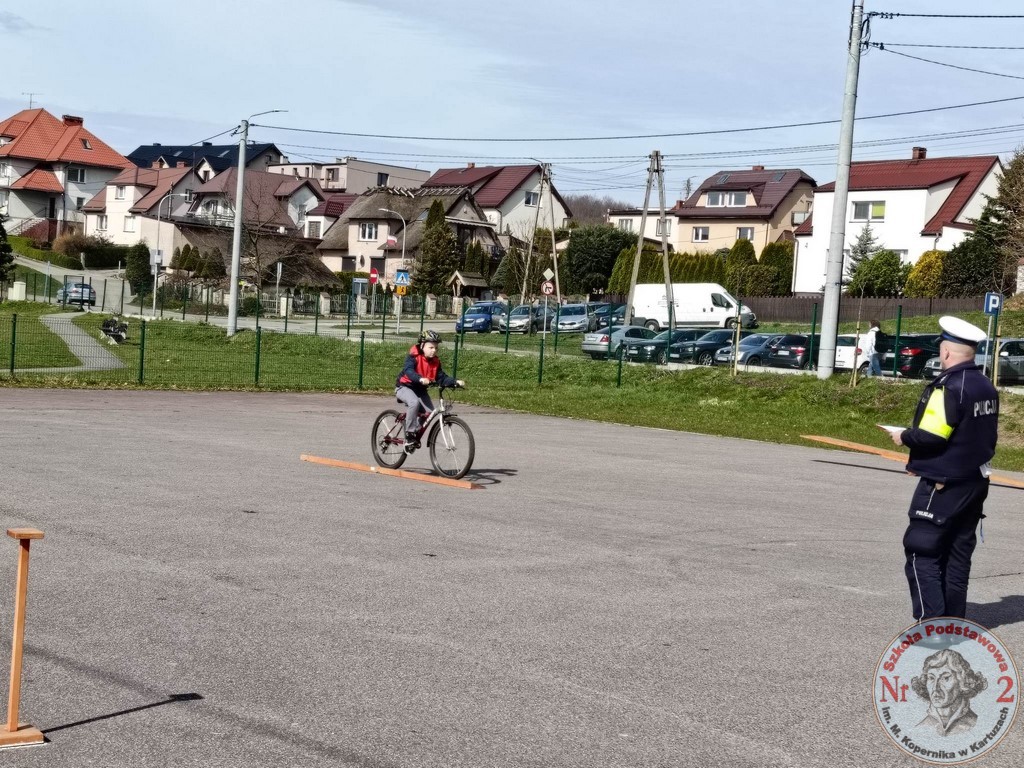 Ostatnią konkurencją był przejazd rowerem przez „Miasteczko Ruchu Drogowego”. Zacięta rywalizacja uczestników konkursu towarzyszyła do samego końca. Po podliczeniu końcowej punktacji okazało się, że obie drużyny Szkoły Podstawowej Nr 2 im. Mikołaja Kopernika w Kartuzach awansowały do etapu powiatowego.