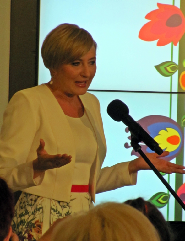 Kilka minut, które Pani Prezydentowa spędziła w gronie naszego zespołu wypełniła ciepła i serdeczna rozmowa. Na ręce Pani Prezydentowej trafiły upominki – przekazana przez OKiS w Żukowie ceramika, zdobiona motywami haftu kaszubskiego oraz prześliczny album o Żukowie autorstwa p. Macieja Kosycarza, a także upominek od zespołu – płyta z kolędami kaszubskimi „Kolędy z Kaszub – Chwaszcziń skô Kòlãda” nagrana przez zespół w 2015 r – informują panie z zespołu „Kaszubki”.