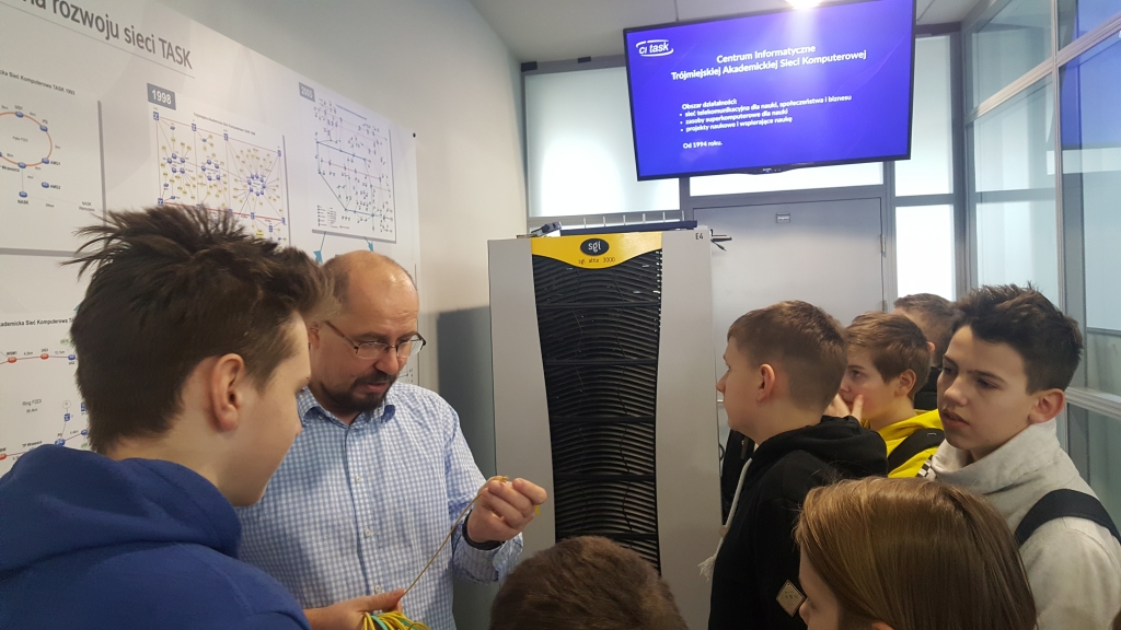 Jedna z wycieczek członków kół informatycznych z gminy Żukowo miała na celu zapoznanie ich z działaniem i budową Trytona – superkomputera. Mieści się on w gmachu Politechniki Gdańskiej, waży około 30 ton! Jego działanie możemy przyrównać do 1600 pojedynczych komputerów. Superkomputer wykonuje biliard operacji matematycznych na sekundę. Naprawdę robi wrażenie!