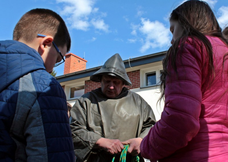 Prezenter opowiedział uczniom o tym, jak niegdyś wyglądały połowy ryb na kaszubskich jeziorach. Mówił o narzędziach, sieciach, saniach, a a nawet zaśpiewał kaszubskie, rybne abecadło. Po prezentacji odbyły się gry nawiązujące do zawodu rybaka: „wędzarnie”, „wyścig czółen” oraz „łowienie na wędkę”.
