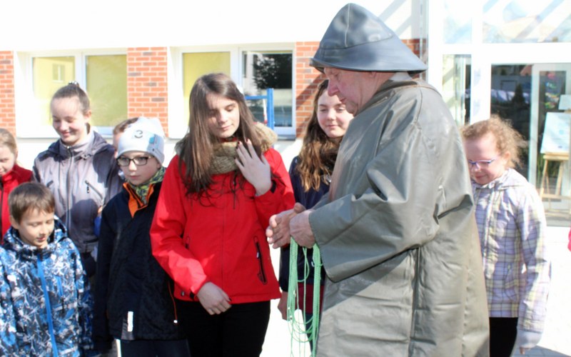 Prezenter opowiedział uczniom o tym, jak niegdyś wyglądały połowy ryb na kaszubskich jeziorach. Mówił o narzędziach, sieciach, saniach, a a nawet zaśpiewał kaszubskie, rybne abecadło. Po prezentacji odbyły się gry nawiązujące do zawodu rybaka: „wędzarnie”, „wyścig czółen” oraz „łowienie na wędkę”.