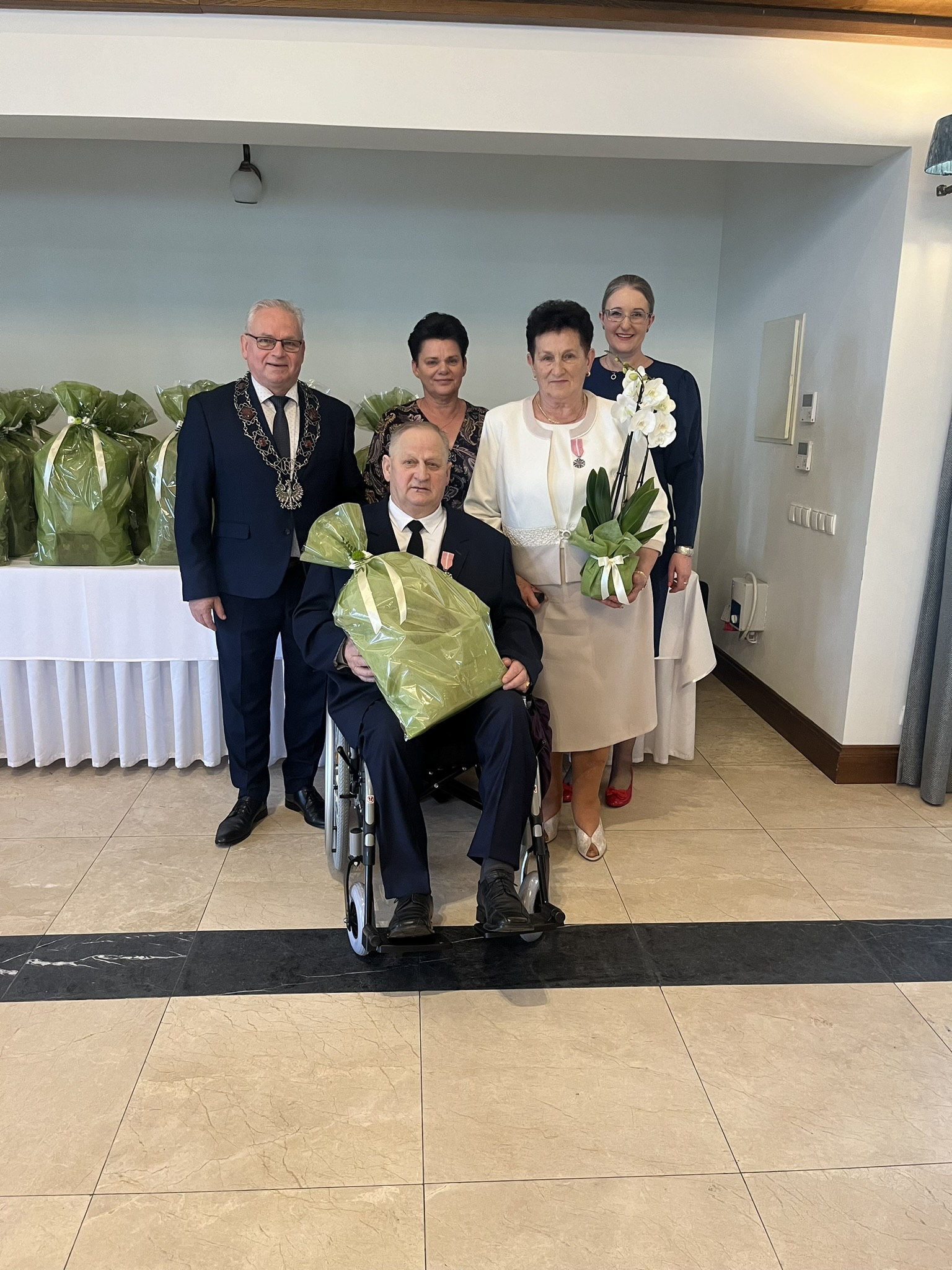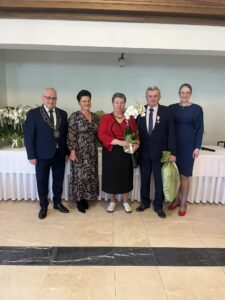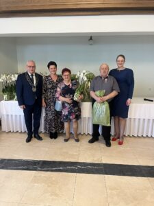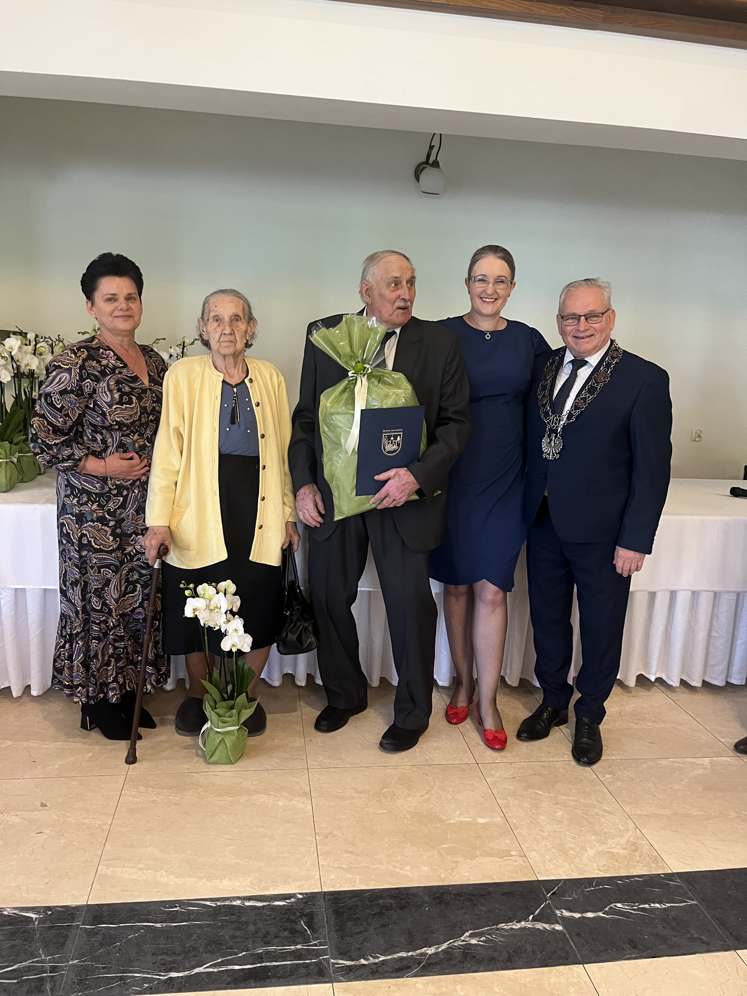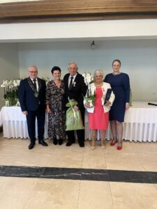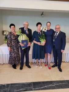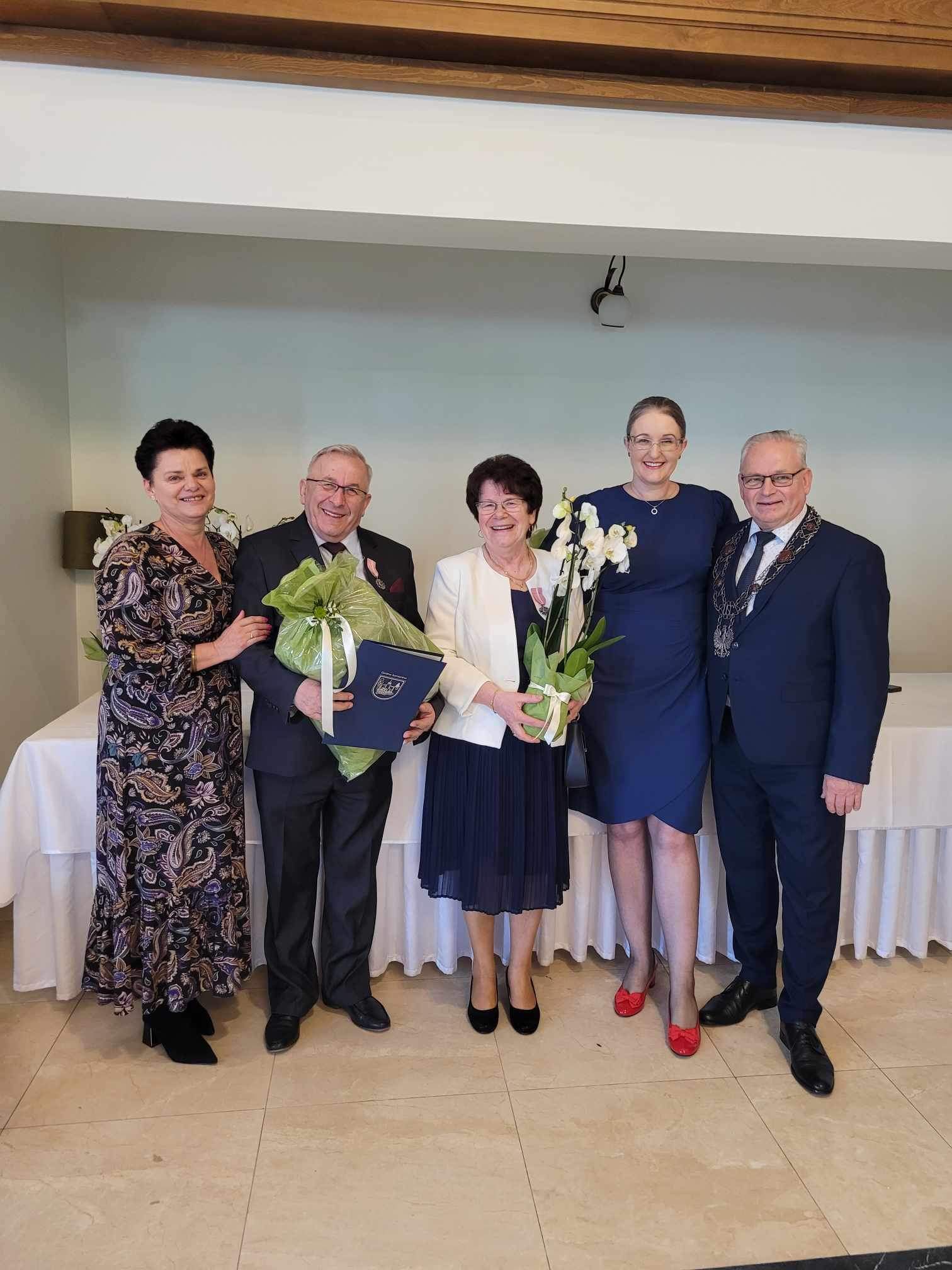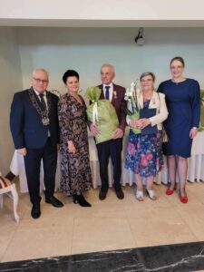 Życzenia składali również przewodniczący Rady Gminy Andrzej Sołtysek, kierownik Urzędu Stanu Cywilnego Barbara Łada oraz była kierownik Urzędu Stanu Cywilnego w Somoninie Bernadeta Licau. Nad organizacją całej uroczystości czuwała kierownik Urzędu Stanu Cywilnego Barbara Łada.