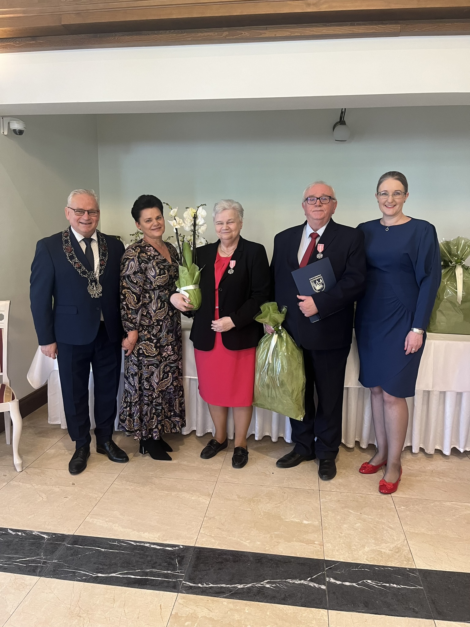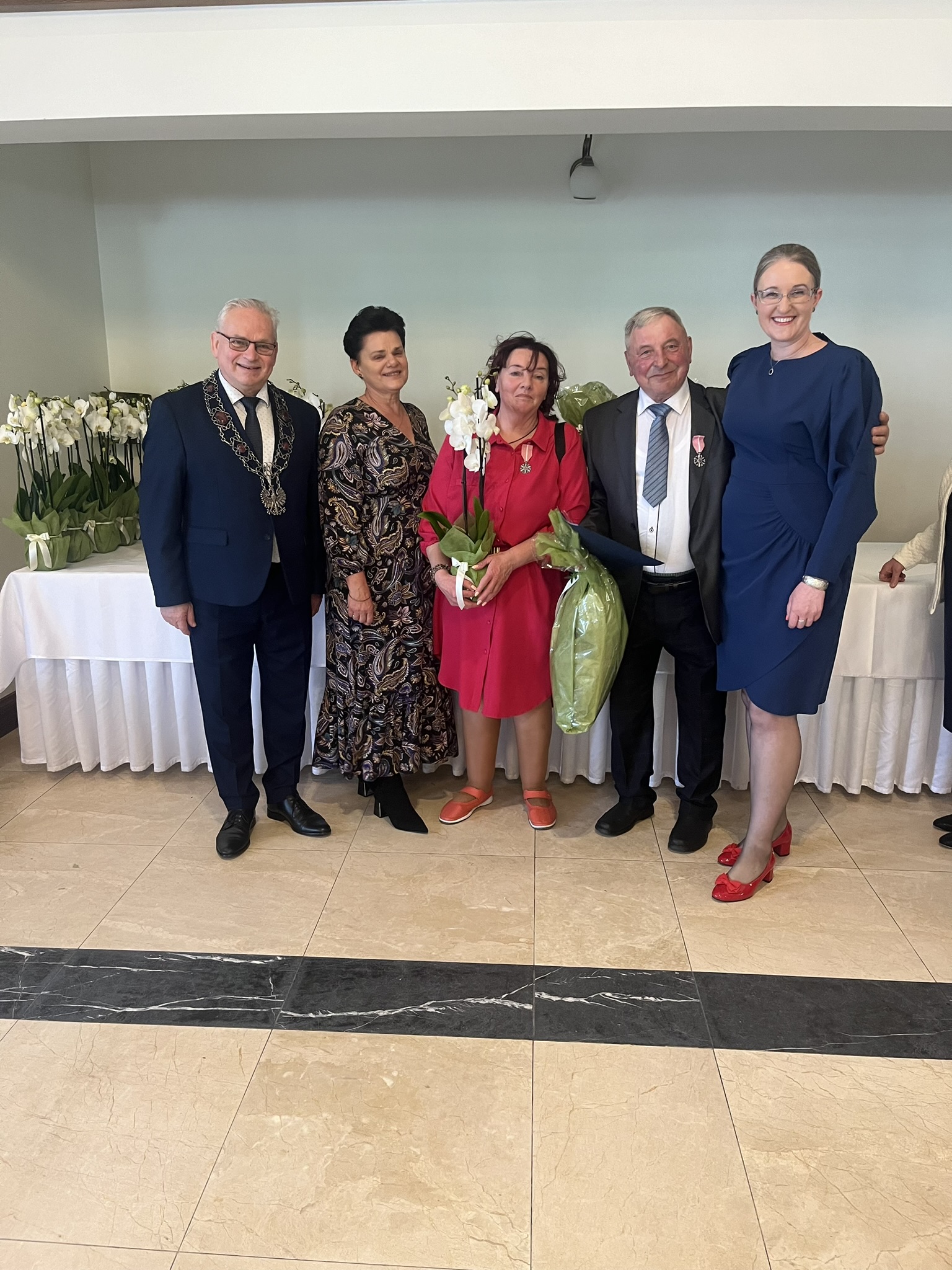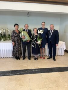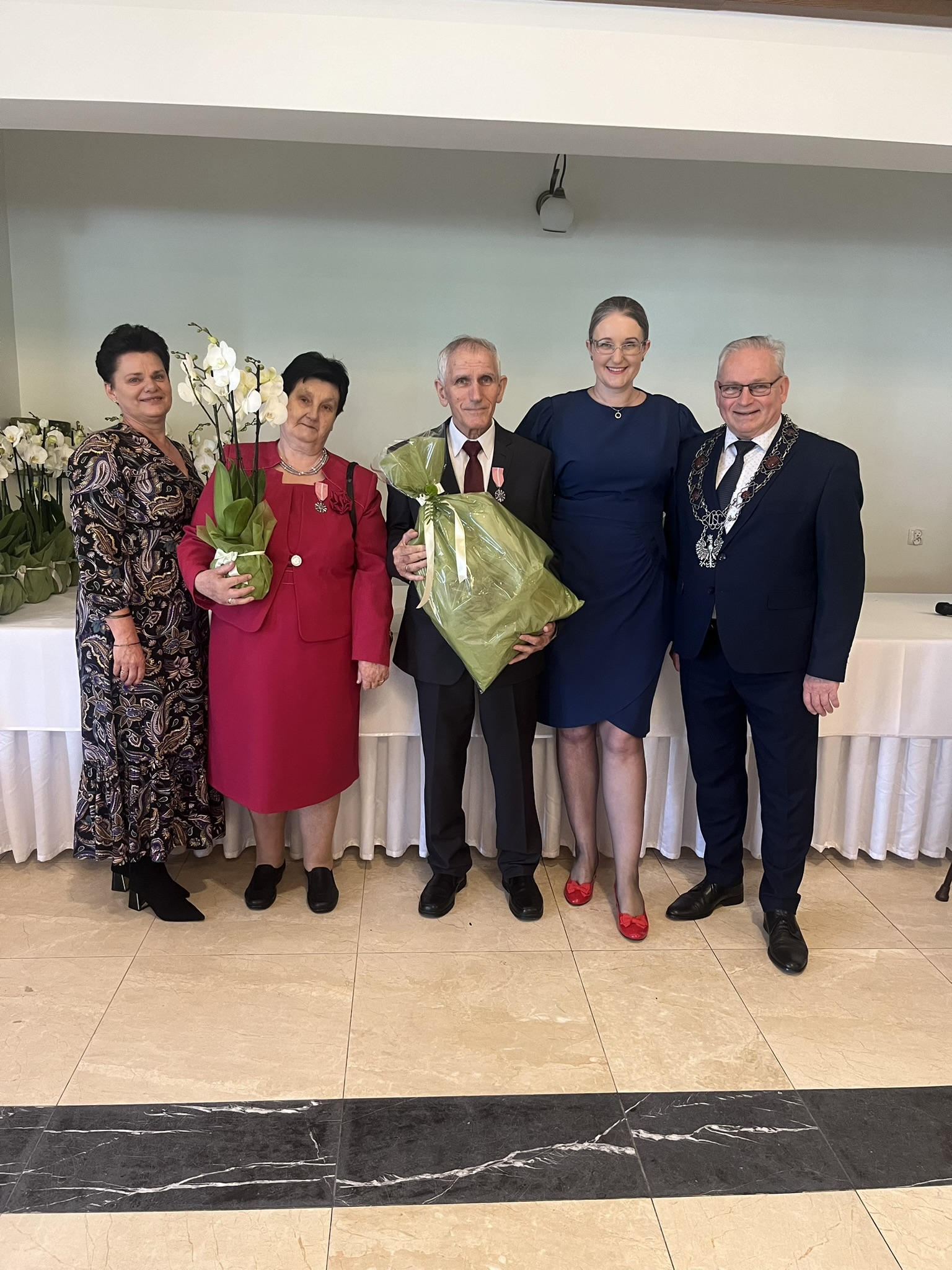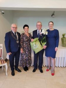 Życzenia składali również przewodniczący Rady Gminy Andrzej Sołtysek, kierownik Urzędu Stanu Cywilnego Barbara Łada oraz była kierownik Urzędu Stanu Cywilnego w Somoninie Bernadeta Licau. Nad organizacją całej uroczystości czuwała kierownik Urzędu Stanu Cywilnego Barbara Łada.