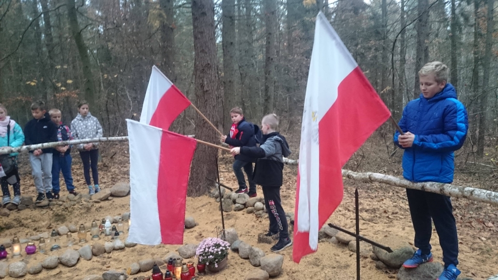 Uczestnicy Marszu nawiedzili pobliskie groby spoczywających w lesie żołnierzy, zapalając znicze i modląc się za wszystkich zmarłych, którzy oddali życie za Ojczyznę. Dodatkowo w chwilę zadumy wprowadziły odczytane przez uczennice z klasy VII wiersze patriotyczne.