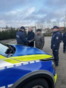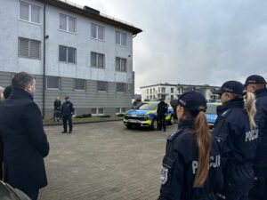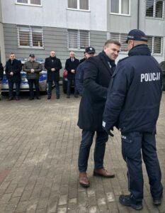 Komendant Powiatowy Policji w Kartuzach mł. insp. Tomasz Juński złożył podziękowania staroście powiatu kartuskiego, przewodniczącemu Rady Powiatu, burmistrzowi gminy Żukowo oraz wójtowi gminy Chmielno, którzy w większej części sfinansowali zakup radiowozów.