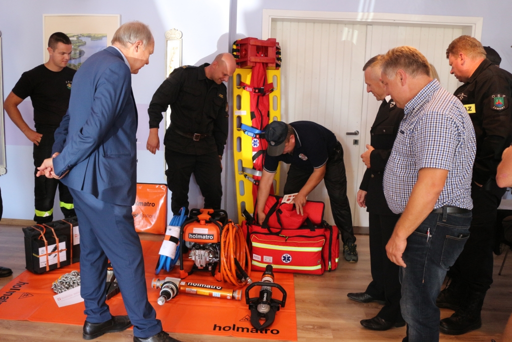 Jednostka z Chmielna otrzymała zestaw ratownictwa technicznego,  w tym m.in. agregat hydrauliczny, rozpieracz ramieniowy z akcesoriami, hydrauliczne nożyce do cięcia i hydrauliczny rozpieracz kolumnowy. Strażacy ochotnicy z Kożyczkowa zostali doposażeni w zestaw ratownictwa medycznego PSP 1 z szynami i noszami. Do jednostki w Zaworach trafił defibrylator.