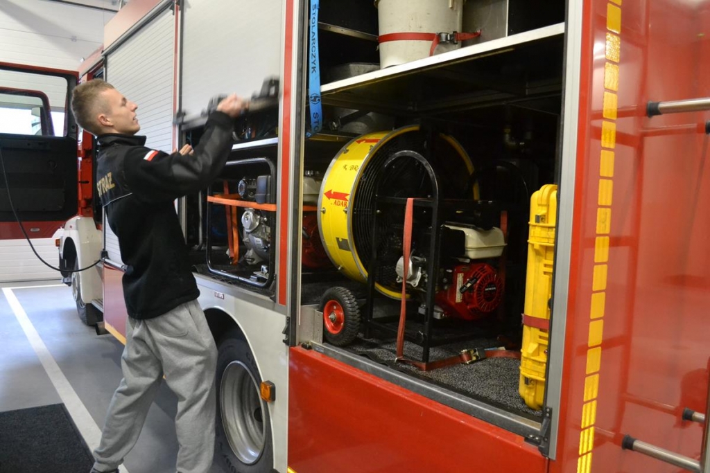 Strażnicę zwiedziliśmy wraz z młodzieżą z żukowskiego gimnazjum. Strażak Michał Groth dzieli się z gimnazjalistami swoją wiedzą, opisując działanie sprzętu ratowniczego znajdującego się pod dachem nowej remizy. Młodzież mogła uważnie przyjrzeć się wozom strażackim, łodzi, sankom, pompom oraz wszystkie innym niezbędnym w codziennej pracy ratowników narzędziom.