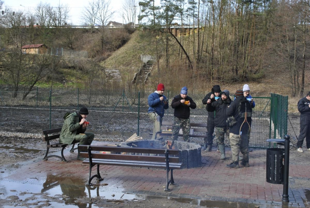 Po wędkowaniu był czas na rozmowę, podzielenie się doświadczeniami z nad Raduni i innych łowisk, był też świetny ciepły poczęstunek, kapuśniak z wkładką niezwykle pożywny przy tak nie sprzyjającej pogodzie, kiedy wreszcie się rozpogodziło udało się rozpalić ognisko i przy pieczonych kiełbaskach pogawędzić o tym i o tamtym.
