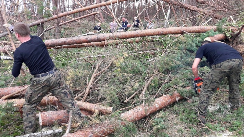 Piłsudczycy z Kartuz przed kilkoma dniami usuwali skutki nawałnicy na drodze Męcikał – Okręglik. Porządkowanie terenu wciąż trwa, mieszkańcy wciąż potrzebują pomocy.