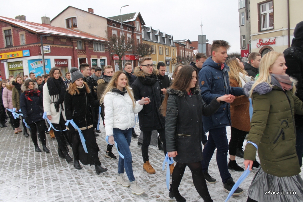 Na kartuskim rynku mogliśmy dziś zobaczyć uczniów ze szkół: Liceum Ogólnokształcącego w Kartuzach, Zespołu Szkół Ogólnokształcących w Kartuzach, Zespołu Szkół Technicznych w Kartuzach, Zespołu Szkół Zawodowych i Ogólnokształcących w Kartuzach, Zespołu Szkół Ponadgimnazjalnych w Przodkowie, Zespołu Szkół Ponadgimnazjalnych w Sierakowicach, Zespołu Szkół Ponadgimnazjalnych w Somoninie oraz Zespołu Szkół Zawodowych i Ogólnokształcących w Żukowie. W pierwszych parach pojawili się również przedstawiciele władz samorządowych: Starosta Bogdan Łapa, wicestarosta Piotr Fikus, członkowie Zarządu Powiatu, burmistrz Kartuz Mieczysław Grzegorz Gołuński wraz z wiceburmistrz Sylwią Biankowską.