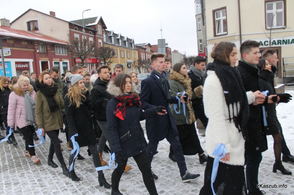 Na kartuskim rynku mogliśmy dziś zobaczyć uczniów ze szkół: Liceum Ogólnokształcącego w Kartuzach, Zespołu Szkół Ogólnokształcących w Kartuzach, Zespołu Szkół Technicznych w Kartuzach, Zespołu Szkół Zawodowych i Ogólnokształcących w Kartuzach, Zespołu Szkół Ponadgimnazjalnych w Przodkowie, Zespołu Szkół Ponadgimnazjalnych w Sierakowicach, Zespołu Szkół Ponadgimnazjalnych w Somoninie oraz Zespołu Szkół Zawodowych i Ogólnokształcących w Żukowie. W pierwszych parach pojawili się również przedstawiciele władz samorządowych: Starosta Bogdan Łapa, wicestarosta Piotr Fikus, członkowie Zarządu Powiatu, burmistrz Kartuz Mieczysław Grzegorz Gołuński wraz z wiceburmistrz Sylwią Biankowską.