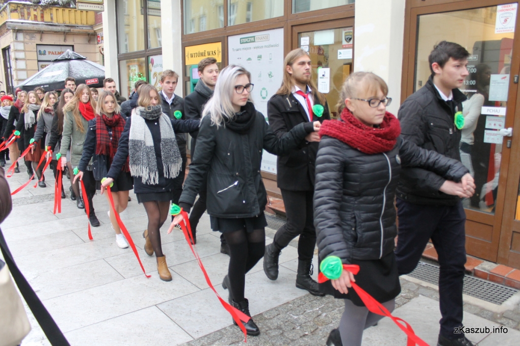 Na kartuskim rynku mogliśmy dziś zobaczyć uczniów ze szkół: Liceum Ogólnokształcącego w Kartuzach, Zespołu Szkół Ogólnokształcących w Kartuzach, Zespołu Szkół Technicznych w Kartuzach, Zespołu Szkół Zawodowych i Ogólnokształcących w Kartuzach, Zespołu Szkół Ponadgimnazjalnych w Przodkowie, Zespołu Szkół Ponadgimnazjalnych w Sierakowicach, Zespołu Szkół Ponadgimnazjalnych w Somoninie oraz Zespołu Szkół Zawodowych i Ogólnokształcących w Żukowie. W pierwszych parach pojawili się również przedstawiciele władz samorządowych: Starosta Bogdan Łapa, wicestarosta Piotr Fikus, członkowie Zarządu Powiatu, burmistrz Kartuz Mieczysław Grzegorz Gołuński wraz z wiceburmistrz Sylwią Biankowską.