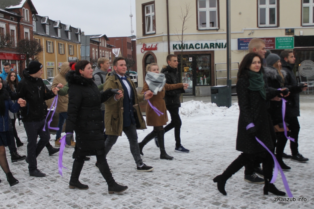 Na kartuskim rynku mogliśmy dziś zobaczyć uczniów ze szkół: Liceum Ogólnokształcącego w Kartuzach, Zespołu Szkół Ogólnokształcących w Kartuzach, Zespołu Szkół Technicznych w Kartuzach, Zespołu Szkół Zawodowych i Ogólnokształcących w Kartuzach, Zespołu Szkół Ponadgimnazjalnych w Przodkowie, Zespołu Szkół Ponadgimnazjalnych w Sierakowicach, Zespołu Szkół Ponadgimnazjalnych w Somoninie oraz Zespołu Szkół Zawodowych i Ogólnokształcących w Żukowie. W pierwszych parach pojawili się również przedstawiciele władz samorządowych: Starosta Bogdan Łapa, wicestarosta Piotr Fikus, członkowie Zarządu Powiatu, burmistrz Kartuz Mieczysław Grzegorz Gołuński wraz z wiceburmistrz Sylwią Biankowską.
