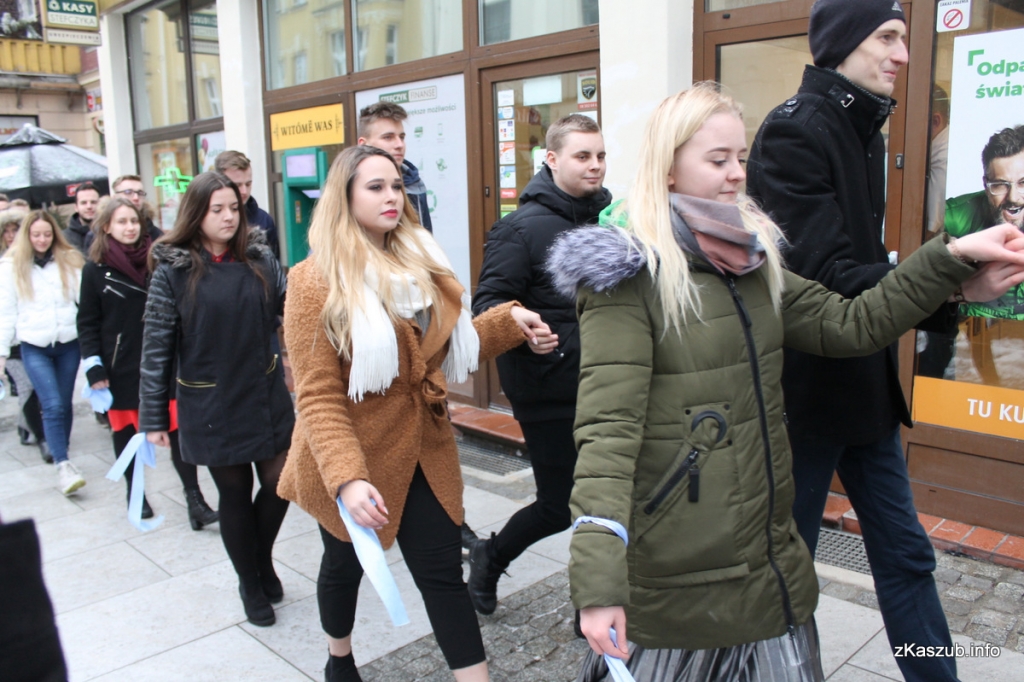 Na kartuskim rynku mogliśmy dziś zobaczyć uczniów ze szkół: Liceum Ogólnokształcącego w Kartuzach, Zespołu Szkół Ogólnokształcących w Kartuzach, Zespołu Szkół Technicznych w Kartuzach, Zespołu Szkół Zawodowych i Ogólnokształcących w Kartuzach, Zespołu Szkół Ponadgimnazjalnych w Przodkowie, Zespołu Szkół Ponadgimnazjalnych w Sierakowicach, Zespołu Szkół Ponadgimnazjalnych w Somoninie oraz Zespołu Szkół Zawodowych i Ogólnokształcących w Żukowie. W pierwszych parach pojawili się również przedstawiciele władz samorządowych: Starosta Bogdan Łapa, wicestarosta Piotr Fikus, członkowie Zarządu Powiatu, burmistrz Kartuz Mieczysław Grzegorz Gołuński wraz z wiceburmistrz Sylwią Biankowską.