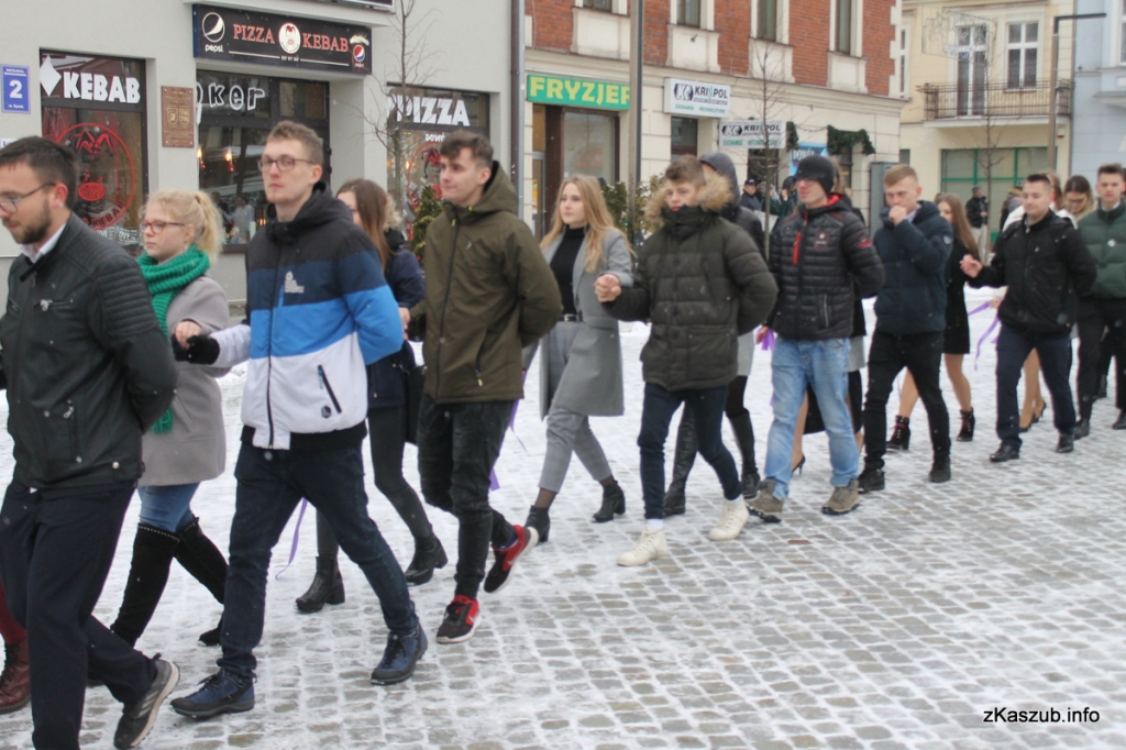 Na kartuskim rynku mogliśmy dziś zobaczyć uczniów ze szkół: Liceum Ogólnokształcącego w Kartuzach, Zespołu Szkół Ogólnokształcących w Kartuzach, Zespołu Szkół Technicznych w Kartuzach, Zespołu Szkół Zawodowych i Ogólnokształcących w Kartuzach, Zespołu Szkół Ponadgimnazjalnych w Przodkowie, Zespołu Szkół Ponadgimnazjalnych w Sierakowicach, Zespołu Szkół Ponadgimnazjalnych w Somoninie oraz Zespołu Szkół Zawodowych i Ogólnokształcących w Żukowie. W pierwszych parach pojawili się również przedstawiciele władz samorządowych: Starosta Bogdan Łapa, wicestarosta Piotr Fikus, członkowie Zarządu Powiatu, burmistrz Kartuz Mieczysław Grzegorz Gołuński wraz z wiceburmistrz Sylwią Biankowską.