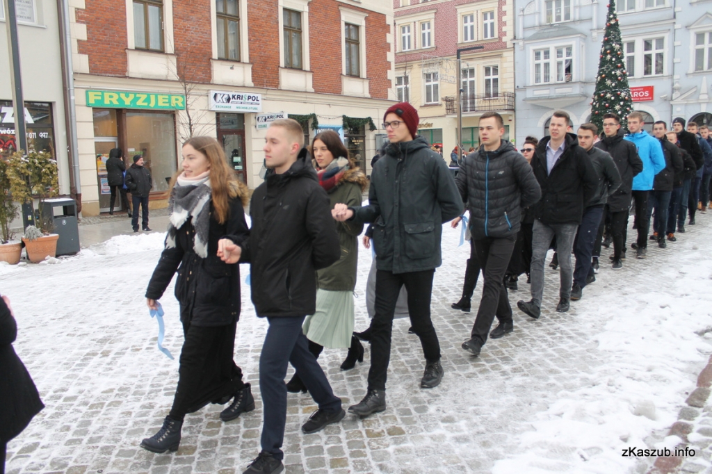 Na kartuskim rynku mogliśmy dziś zobaczyć uczniów ze szkół: Liceum Ogólnokształcącego w Kartuzach, Zespołu Szkół Ogólnokształcących w Kartuzach, Zespołu Szkół Technicznych w Kartuzach, Zespołu Szkół Zawodowych i Ogólnokształcących w Kartuzach, Zespołu Szkół Ponadgimnazjalnych w Przodkowie, Zespołu Szkół Ponadgimnazjalnych w Sierakowicach, Zespołu Szkół Ponadgimnazjalnych w Somoninie oraz Zespołu Szkół Zawodowych i Ogólnokształcących w Żukowie. W pierwszych parach pojawili się również przedstawiciele władz samorządowych: Starosta Bogdan Łapa, wicestarosta Piotr Fikus, członkowie Zarządu Powiatu, burmistrz Kartuz Mieczysław Grzegorz Gołuński wraz z wiceburmistrz Sylwią Biankowską.