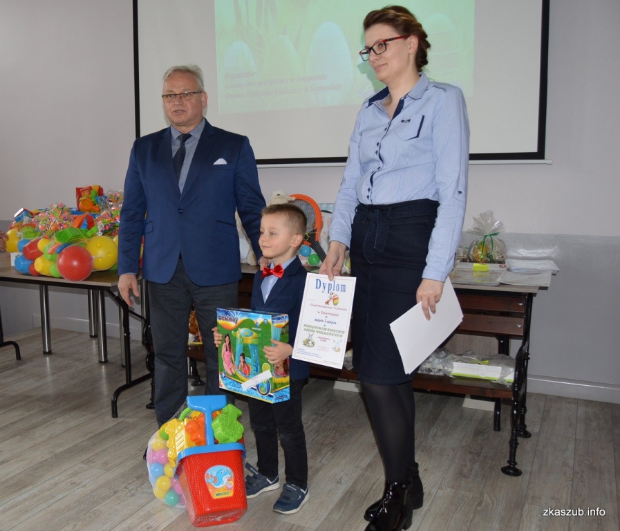 Wszyscy uczniowie, którzy nie zdobyli w konkursie żadnej lokaty zostali obdarowani nagrodami pocieszenia. Organizatorem Konkursu Ozdób Wielkanocnych był Gminny Ośrodek Kultury oraz Gminna Biblioteka Publiczna w Somoninie. Przy wsparciu finansowym Starostwa Powiatowego w Kartuzach.