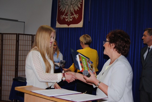 Martę Belgrau za wysokie wyniki w nauce (uczennica otrzymała również nagrodę Starosty Kartuskiego za najwyższą średnią ocen wśród tegorocznych absolwentów),