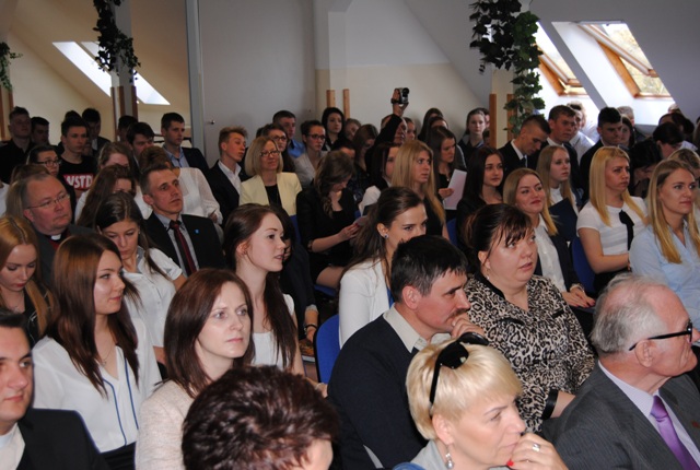 Spotkanie zainaugurowała dyrektor Elżbieta Świętoń, dzieląc się refleksjami na temat wspólnie spędzonych lat oraz wypełnienia misji, jaką kieruje się nasza szkoła. Wśród zaproszonych gości znaleźli się między innymi rodzice uczniów, przedstawiciele Rady Powiatu – pan Edmund Kwidziński oraz Zbigniew Dysarz, ks. Piotr Kardas oraz Przewodniczący Związku Nauczycielstwa Polskiego Stanisław Miłosz.