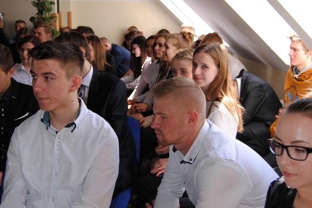 Spotkanie zainaugurowała dyrektor Elżbieta Świętoń, dzieląc się refleksjami na temat wspólnie spędzonych lat oraz wypełnienia misji, jaką kieruje się nasza szkoła. Wśród zaproszonych gości znaleźli się między innymi rodzice uczniów, przedstawiciele Rady Powiatu – pan Edmund Kwidziński oraz Zbigniew Dysarz, ks. Piotr Kardas oraz Przewodniczący Związku Nauczycielstwa Polskiego Stanisław Miłosz.