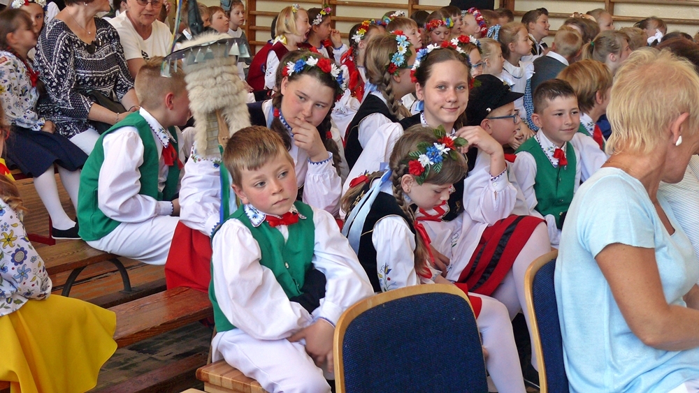 Dziś podczas przeglądu zespoły zaprezentują swój dorobek folklorystyczny – rozpoczął uroczystość jeden z uczniów. – Przegląd ma charakter konkursu w 2 kategoriach wiekowych, dzieci z klas I-III oraz klas IV-VI – dodał prowadzący.
