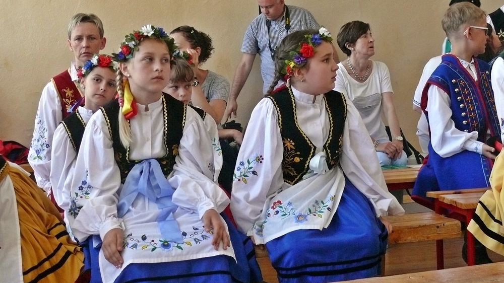 Dziś podczas przeglądu zespoły zaprezentują swój dorobek folklorystyczny – rozpoczął uroczystość jeden z uczniów. – Przegląd ma charakter konkursu w 2 kategoriach wiekowych, dzieci z klas I-III oraz klas IV-VI – dodał prowadzący.