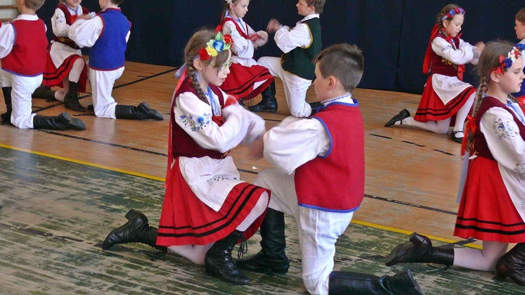 Dziś podczas przeglądu zespoły zaprezentują swój dorobek folklorystyczny – rozpoczął uroczystość jeden z uczniów. – Przegląd ma charakter konkursu w 2 kategoriach wiekowych, dzieci z klas I-III oraz klas IV-VI – dodał prowadzący.