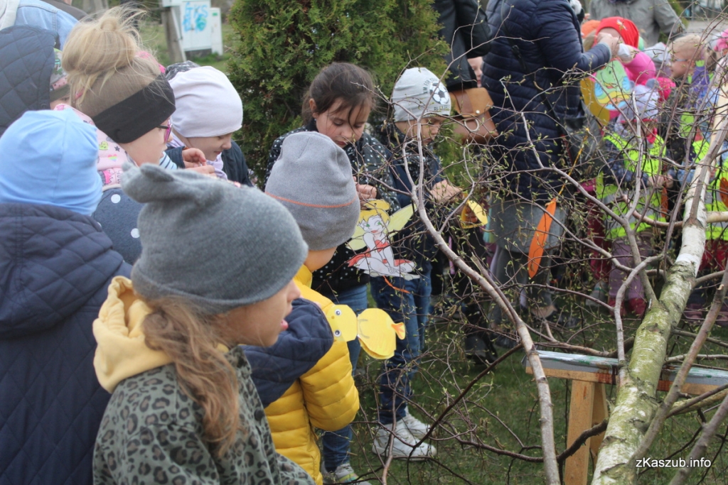 Dziś, mimo niesprzyjającej pogody, przodkowskie dzieci kontynuowały tę tradycję. Przy Szkole Podstawowej w Przodkowie stanęło ozdobione wielkanocne drzewko.