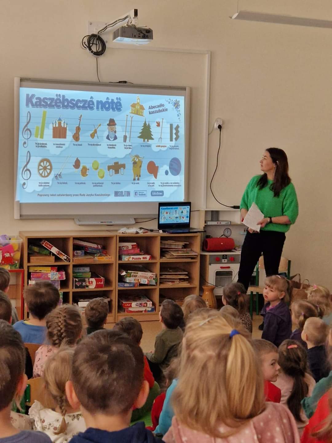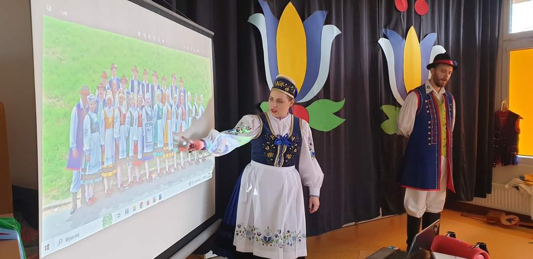 Również drugiego dnia przedszkole odwiedzili członkowie z Regionalnego Zespołu Pieśni i Tańca „Kaszuby” z Kartuz – Aleksandra i Marcin Wiczling. Dzięki nim dzieci poznały tradycyjne stroje kaszubskie, odśpiewały „Kaszubskie Nuty” oraz zobaczyły instrumenty tj. bazuny, burczybas czy diabelskie skrzypce.